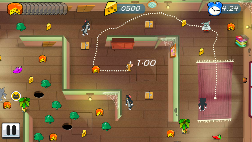 الجبن في كل مكان وجيري في مهمة للحصول عليه كله! لكنه يجب أن يكون حذر من طواف توم على خلسة. ساعد جيري في السباق خلال مستويات مكتظة بالمرح والمتعة اجمع الجبن مع تجنب توم في هذه اللعبة الكلاسيكية بين القط والفأر. استخدام أدوات رفع الطاقة والأدوات المنزلية اليومية للبقاء سابقا بخطوة إلى الأمام. ابق دائما عينك مفتوحة على توم وأصدقائه لأن لسعتهم ستكون ساخنة على ذيلك!